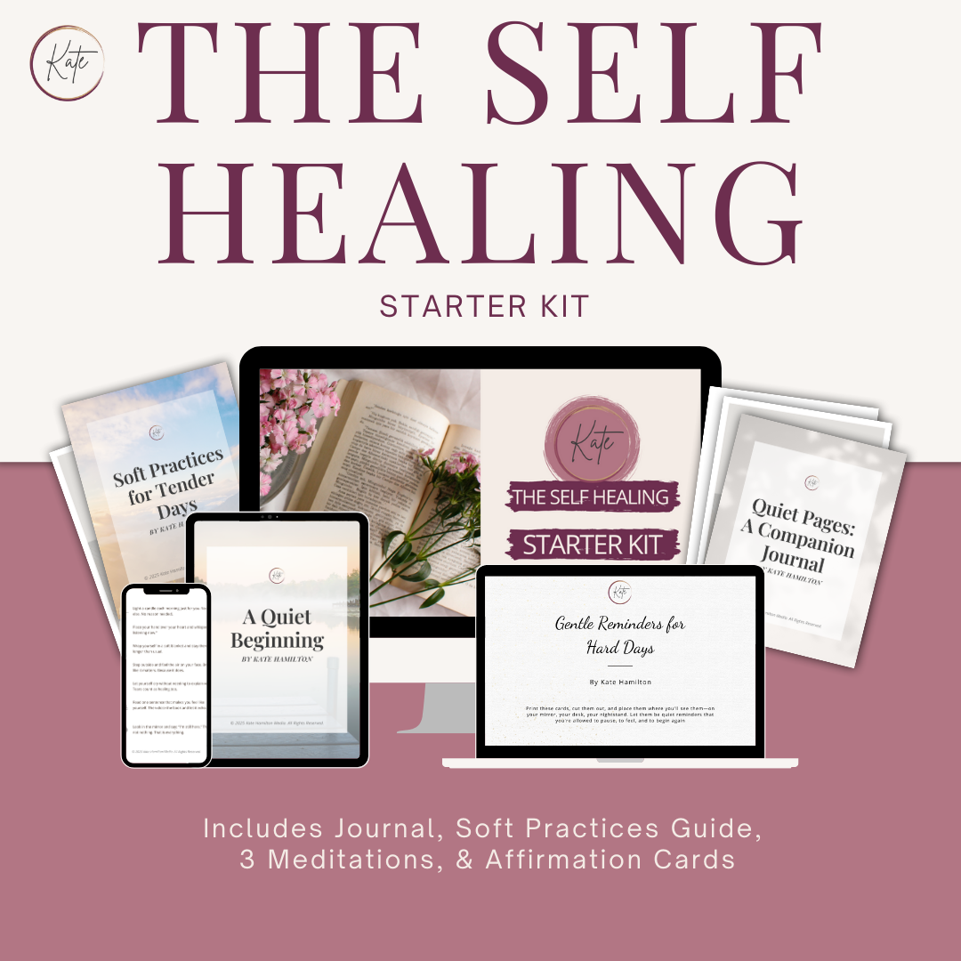 The best place to begin is with the Self-Healing Starter Kit. It includes guided meditations, a self-healing journal, affirmation cards, and soft practices — everything you need to feel supported as you start recovering after narcissistic abuse.